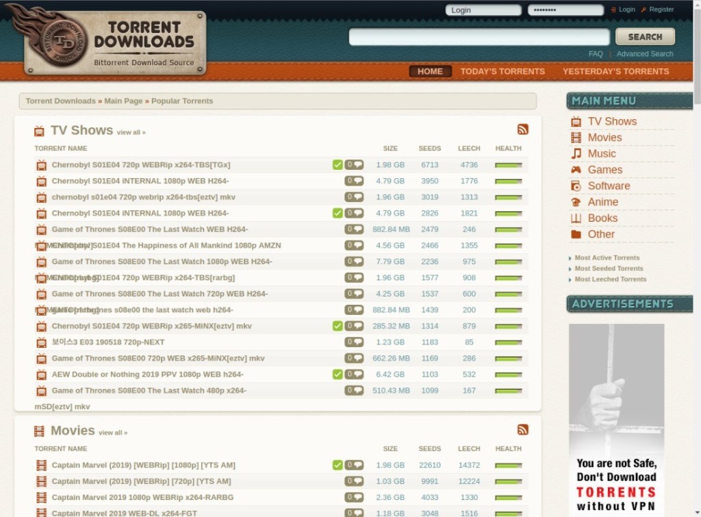 It is one of the most popular sites to download torrents. Its great boom is due to the variety of its gallery. In addition, its platform is simple, easy to use, without complications. Its sections include: